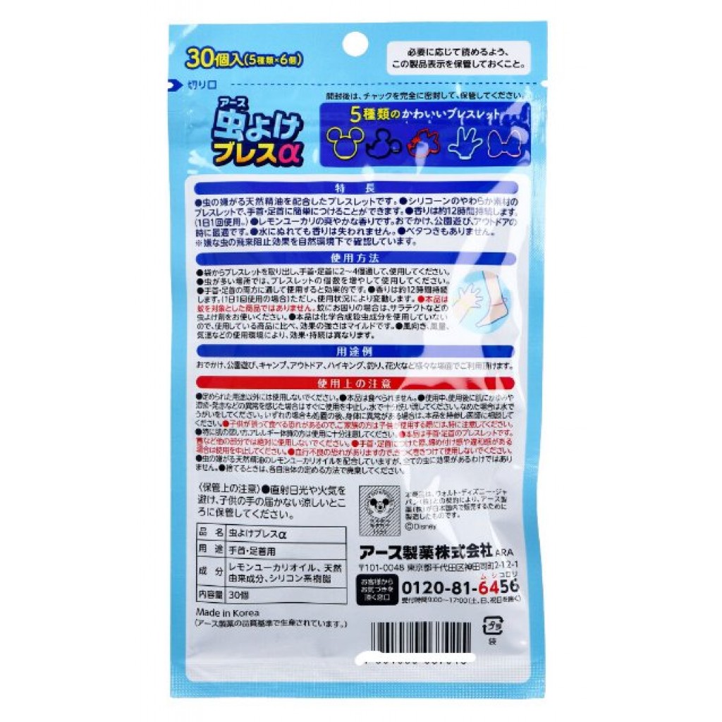 日本Earth迪士尼米奇米妮防蚊手環30入