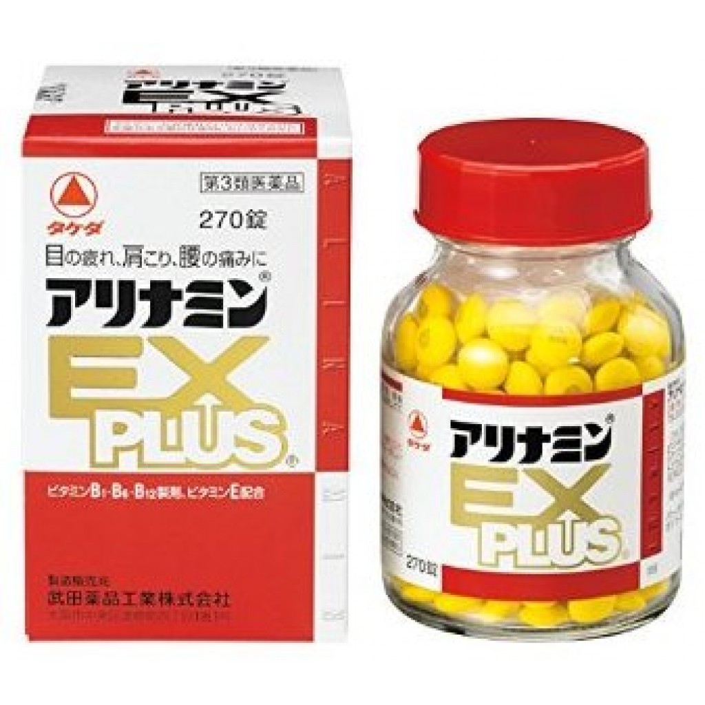 ALINAMIN EX PLUS中 添加有「武田」開發的維生素B1誘導體呋喃硫胺、維生素B6及維生素B12,對於「眼睛疲勞」、「肩部僵硬」、「腰痛」等嚴重症狀效果顯著。